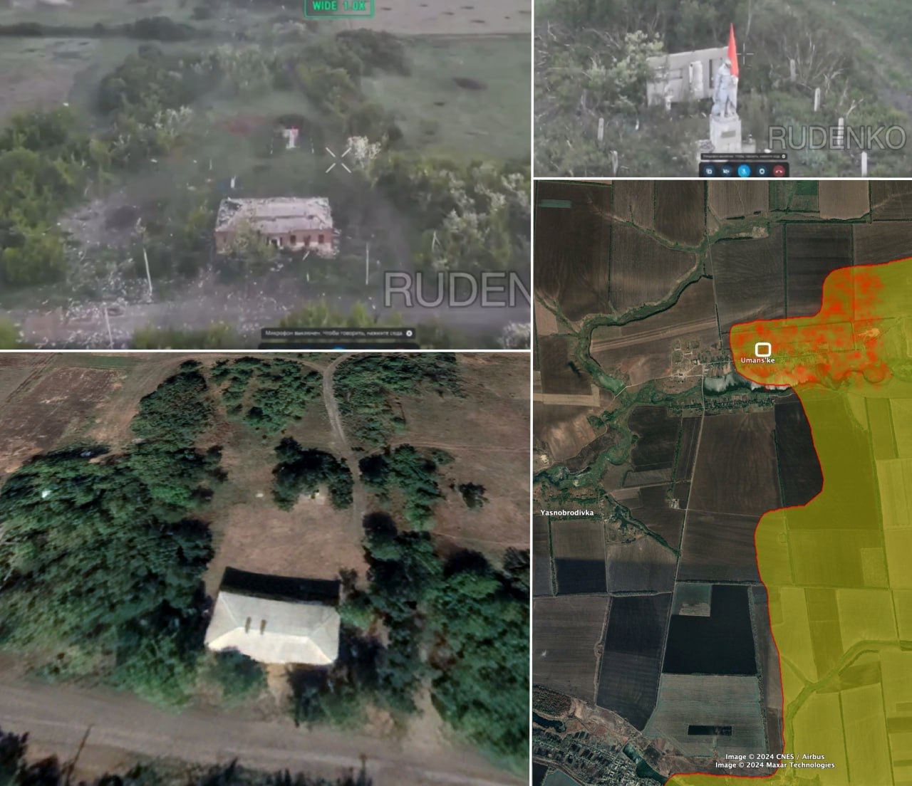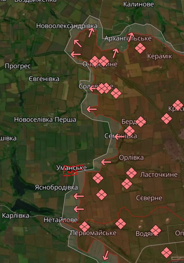 "Южная и западная части села, судя по всему, пока остаются под контролем украинской армии. Часть кадров свидетельствует об ожесточенных атаках на украинские окопы к востоку от Уманского и отход украинских войск на запад по северной стороне озера близ села", — написал Рёпке.