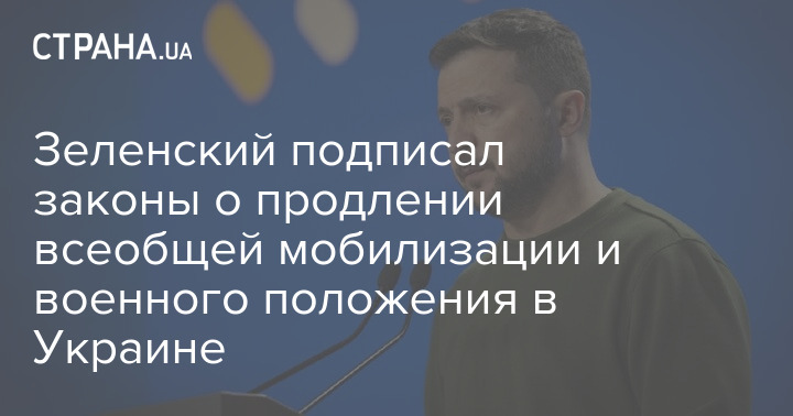 Владимир Зеленский подписал законы о продолжении всеобщей мобилизации и военного положения в Украине.
