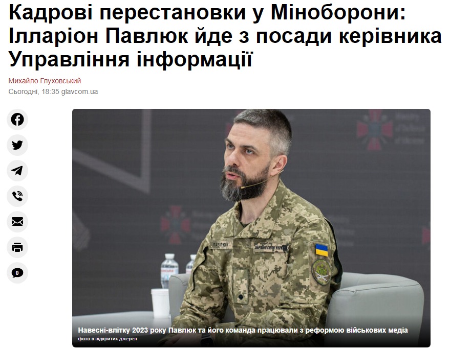 Как утверждают источники, Павлюк переводится на службу в Главное управление разведки. Вместе с ним в ГУР переходит Роман Винтонов, более известный широкой общественности под журналистским псевдонимом Майкл Щур. Винтонов до сих пор работал в Управлении прессы и информации Минобороны.