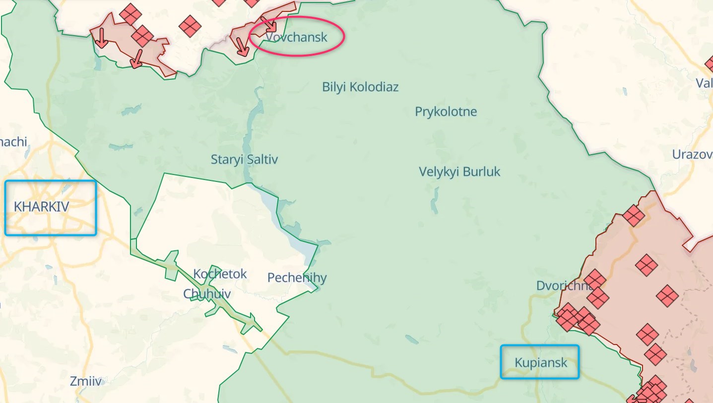 Последние два села расположены к западу от Волчанска, что говорит о попытке окружить город.