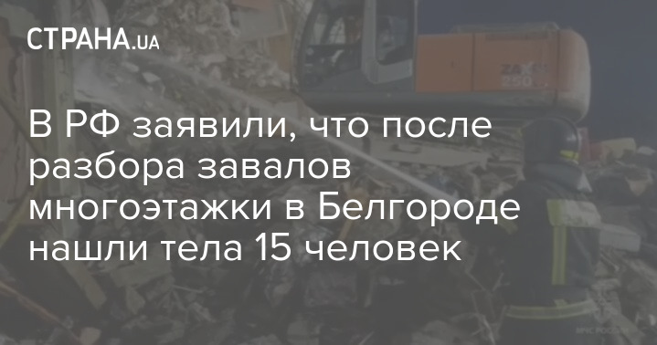 В российском Белгороде закончили разбор завалов многоэтажного дома. В РФ заявили, что найдены тела 15 человек.