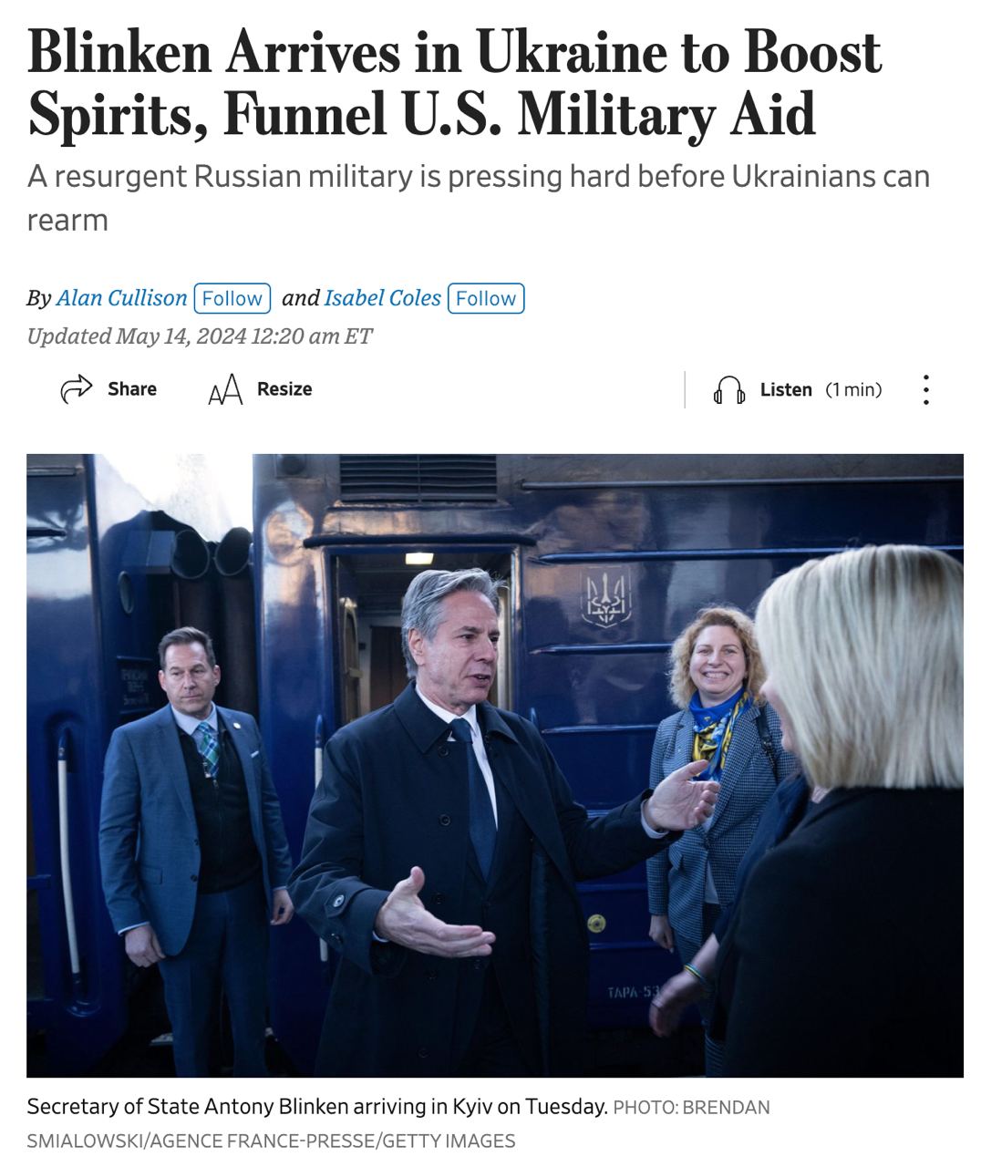 10.33 Блинкен приехал в Украину "укрепить моральный дух правительства в Киеве и помочь направить доставку" новой американской помощи, пишет The Wall Street Journal.
