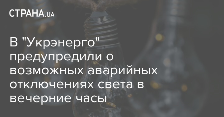 В "Укрэнерго" предупредили о возможных аварийных отключениях света в вечерние часы