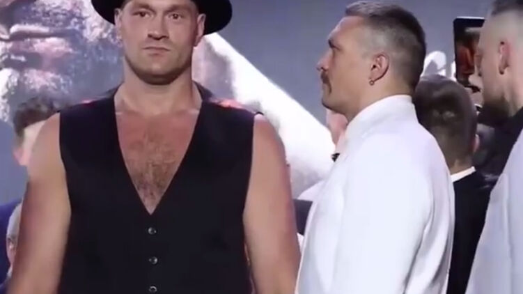 Украинец подошел к британцу после мероприятия и встал напротив него для битвы взглядов. Однако Фьюри, игнорируя Усика, смотрел в сторону зрителей.
