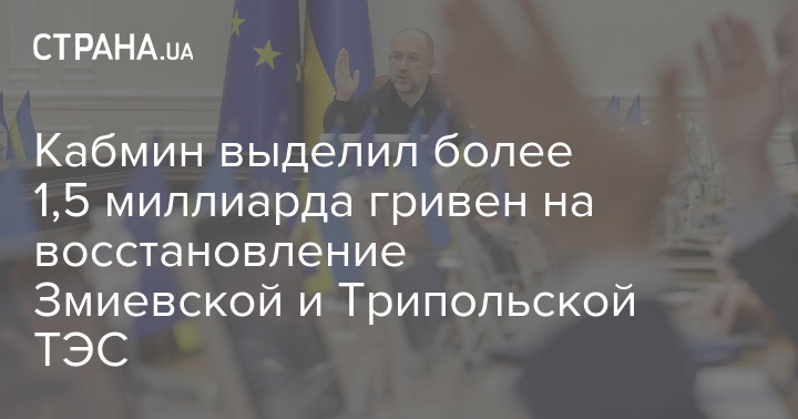 "Более 1,5 млрд гривен выделили сегодня для восстановления Змиевской ТЭС в Харьковской области и Трипольской ТЭС в Киевской области", - говорится в сообщении.