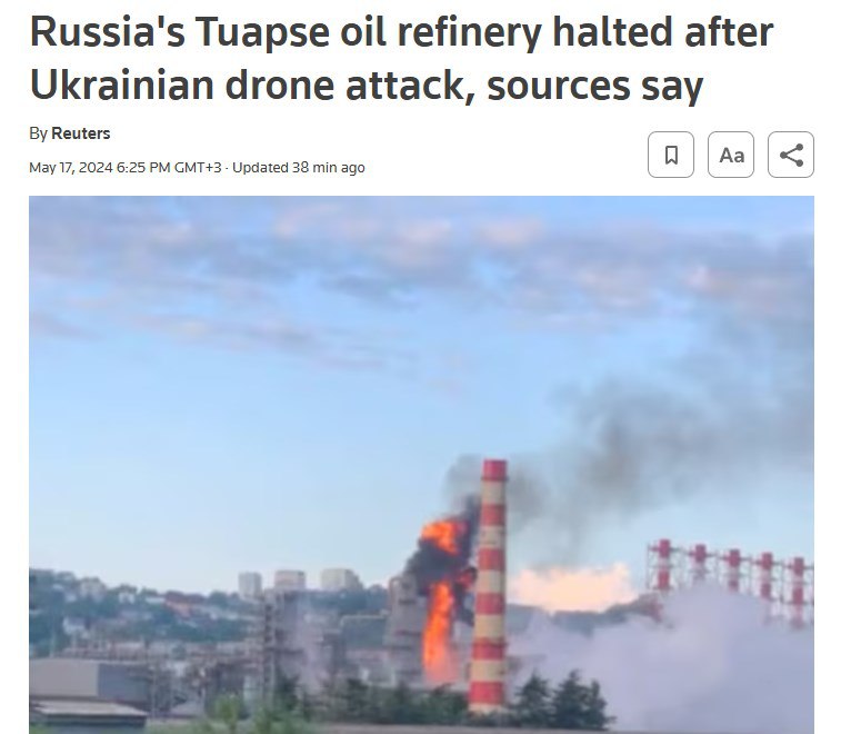 Туапсинский нефтеперерабатывающий завод на территории Краснодарского края РФ остановился из-за атаки украинского беспилотника.