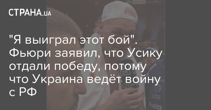 Участник поединка за звание чемпиона мира в супертяжёлом весе Майк Фьюри заявил, что его сопернику Александру Усику присудили победу, "потому что его страна находится в состоянии войны". Сам же британский боксёр утверждает, что выиграл поединок он.