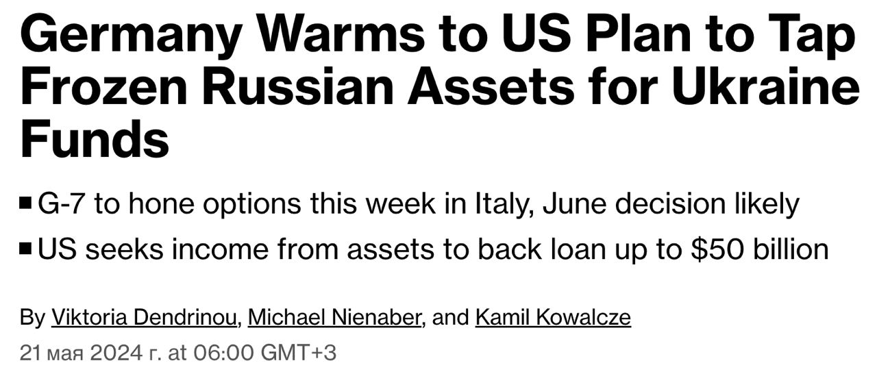 Германия поддерживает план США использовать будущие доходы от активов РФ для Украины - Bloomberg