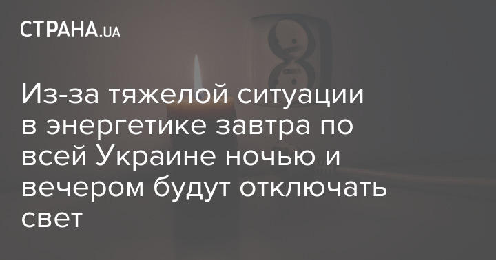 Из-за тяжелой ситуации в энергетике завтра по всей Украине ночью и вечером будут отключать свет