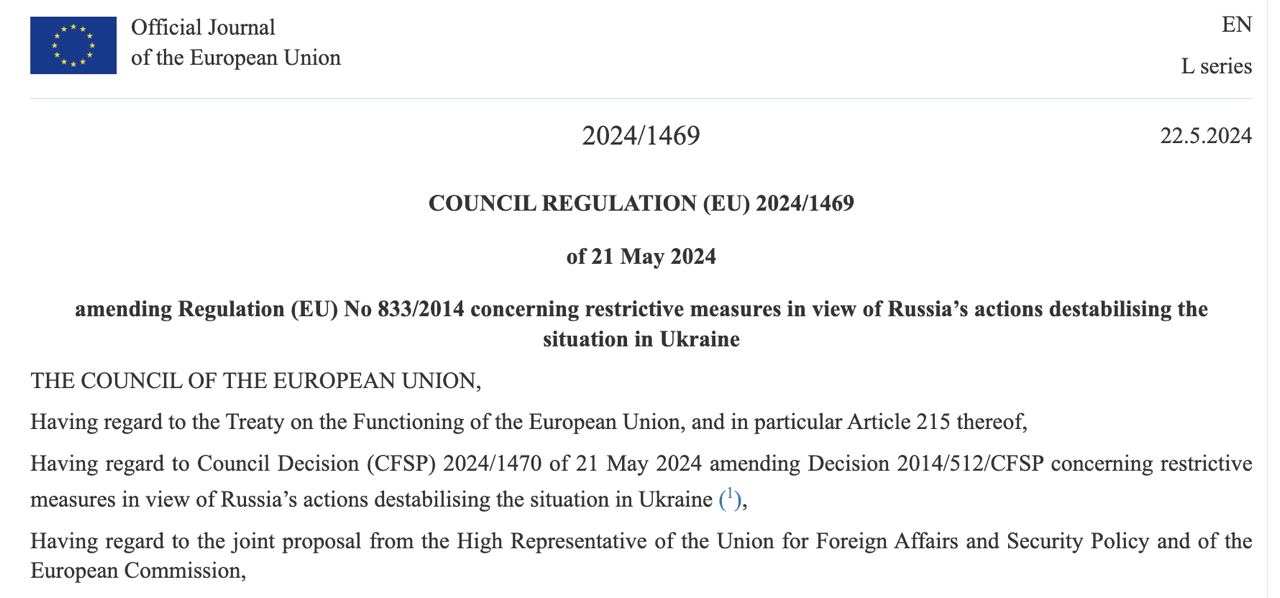 Данное решение добавлено в пакет экономических санкций ЕС против РФ.