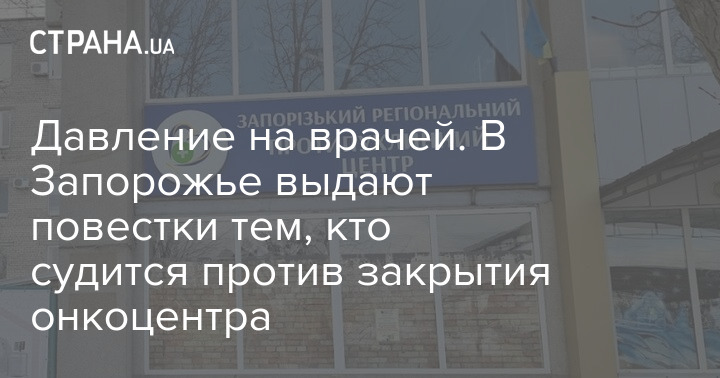 В Запорожье врачам, которые судятся против закрытия местного онкоцентра, выдают повестки. Работники онкологической больницы требуют отменить решение главы Запорожской ОВА Ивана Федорова о ее ликвидации и присоединении к областной поликлинике.