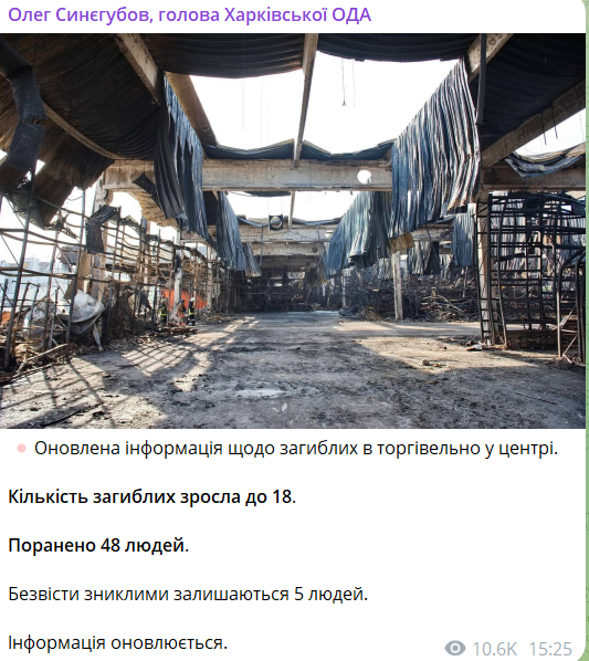 Найдены еще две жертвы российского удара по "Эпицентру" в Харькове. Об этом сообщает глава Харьковской ОВА Олег Синегубов.