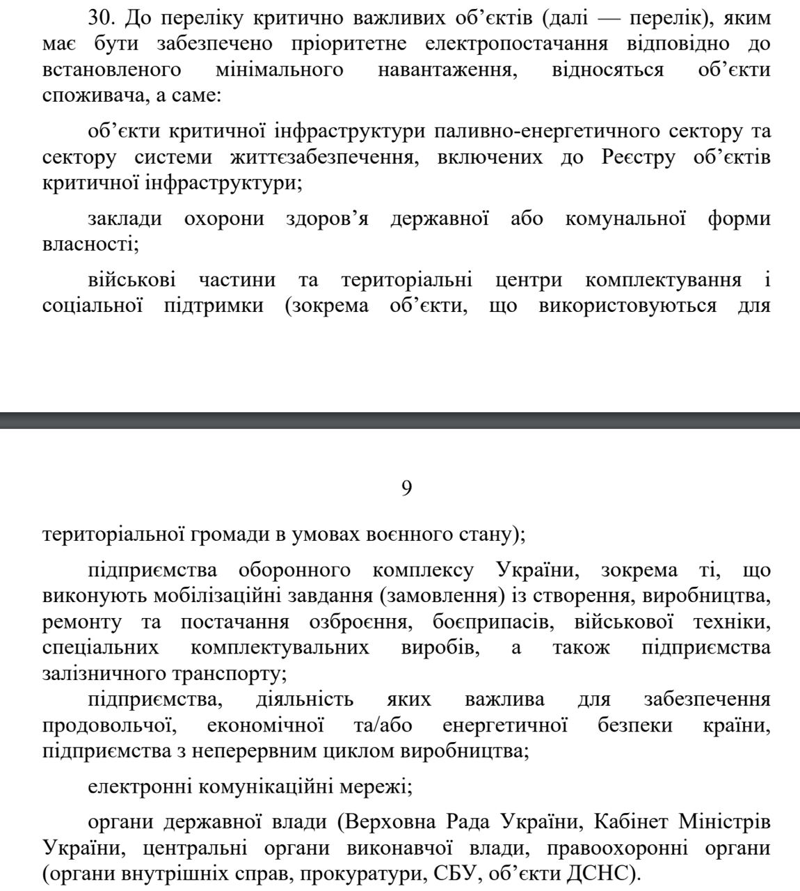 Кабинет министров Украины утвердил список критически важных объектов, которые будут получать приоритетное электроснабжение. В этот список вошли ТЦК и СП, Верховная Рада и предприятия оборонного комплекса.