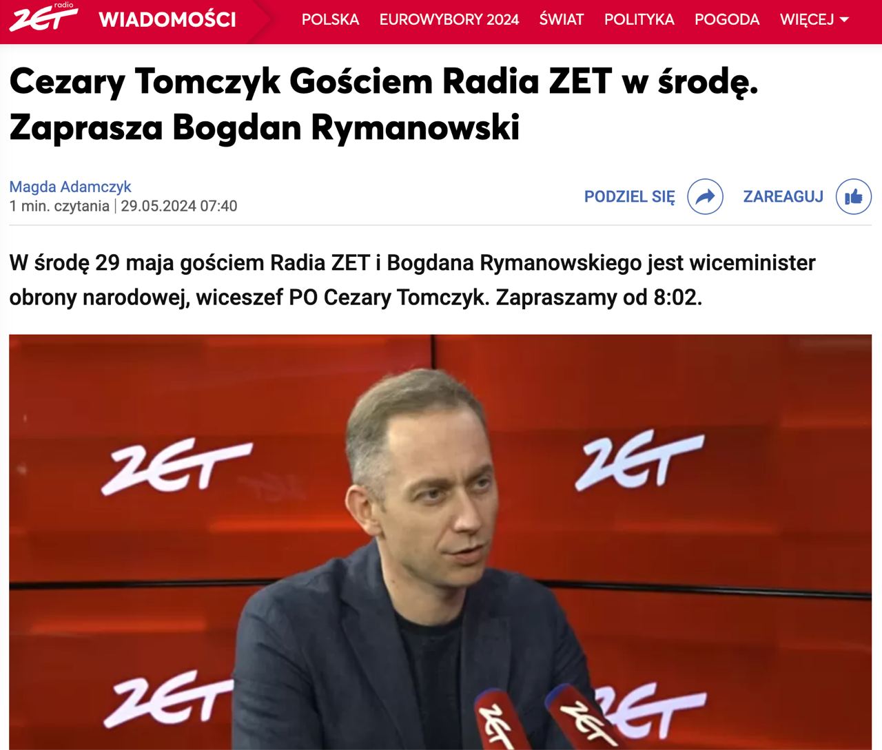 Об этом заявил замглавы польского Минобороны Цезарий Томчик в эфире Radio Zet.