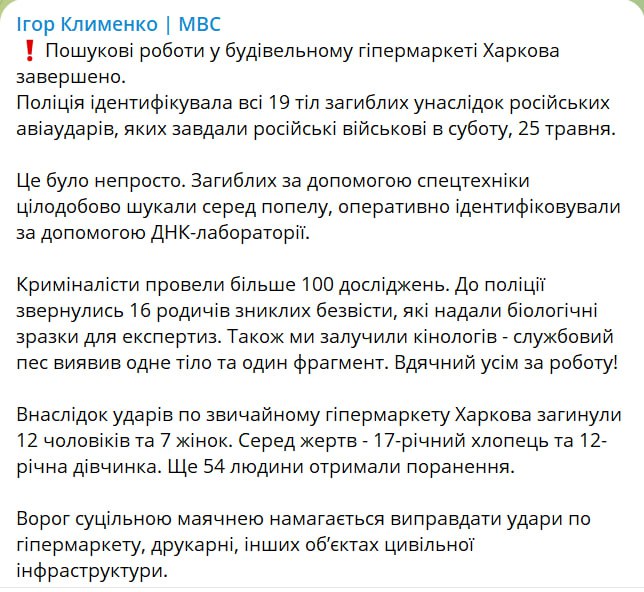08.45 Число погибших в результате удара по харьковскому "Эпицентру" выросло до 19.