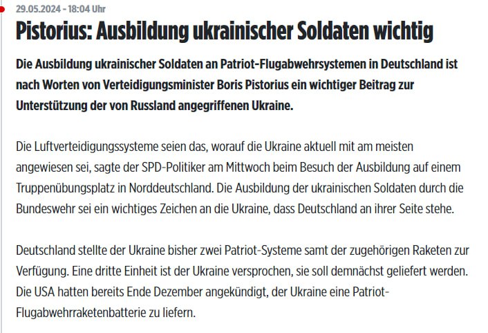 21:35 Министр обороны Германии Борис Писториус высказался против того, чтобы немецкие инструкторы тренировали украинских солдат на территории Украины.