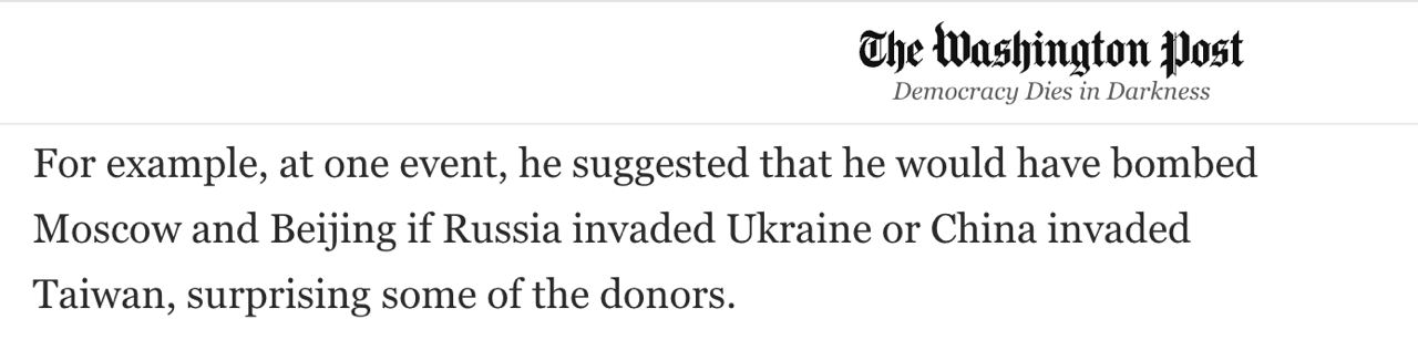 Трамп заявил, что бомбил бы Москву и Пекин за вторжение в Украину и Тайвань при его президентстве - WP