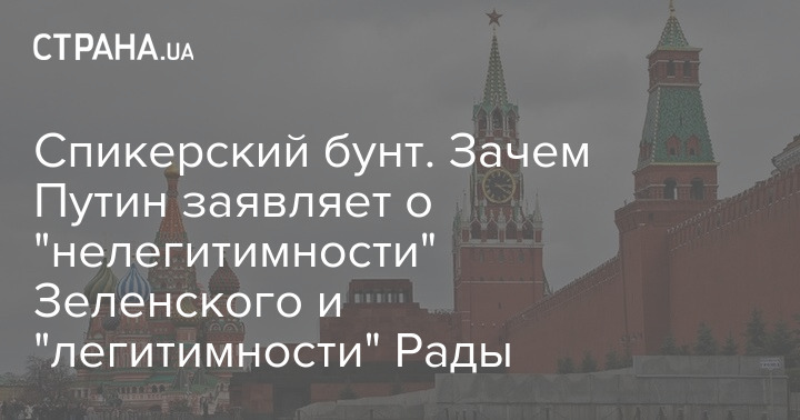 Но если развивать конспирологическую теорию о том, что в Кремле делают заявления о "нелигитимности" Зеленского с целью вызвать некие процессы внутри Украины по отстранению действующего президента от власти, то упоминание Путиным про переход полномочий главы государства спикеру указывает примерную схему, как процесс "свержения Зеленского" могут видеть в Москве: Рада формирует новое "антизеленское" большинство, назначает нового спикера, который объявляет себя "и.о. президента" и требует от Зеленского сдать полномочия.