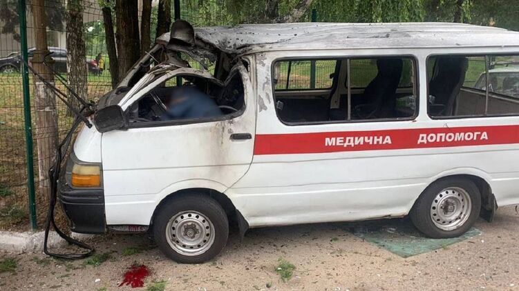 Россияне ударили дроном-камикадзе по машине скорой помощи. Фото: ОВА