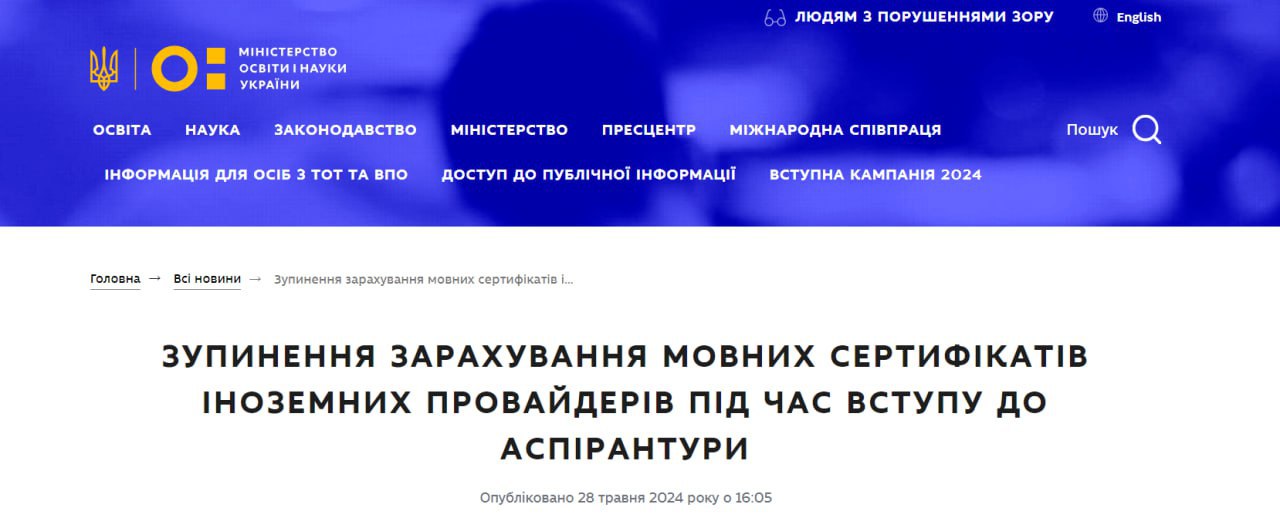 Абитуриентам, поступающим в аспирантуру, не засчитают сертификат по иностранному языку.