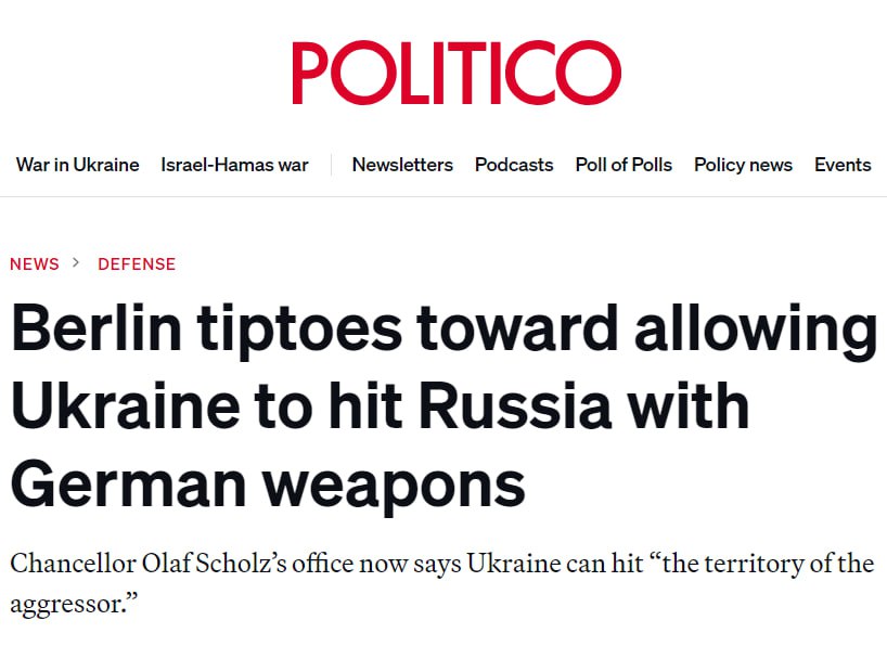 Напомним, в воскресенье сам Шольц заявил, что выступает против ударов по РФ западным оружием.