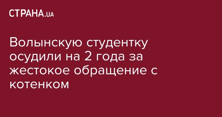 Городской суд Луцка вынес приговор местной студентке за жестокое обращение с котенком в виде двух лет тюрьмы условно.