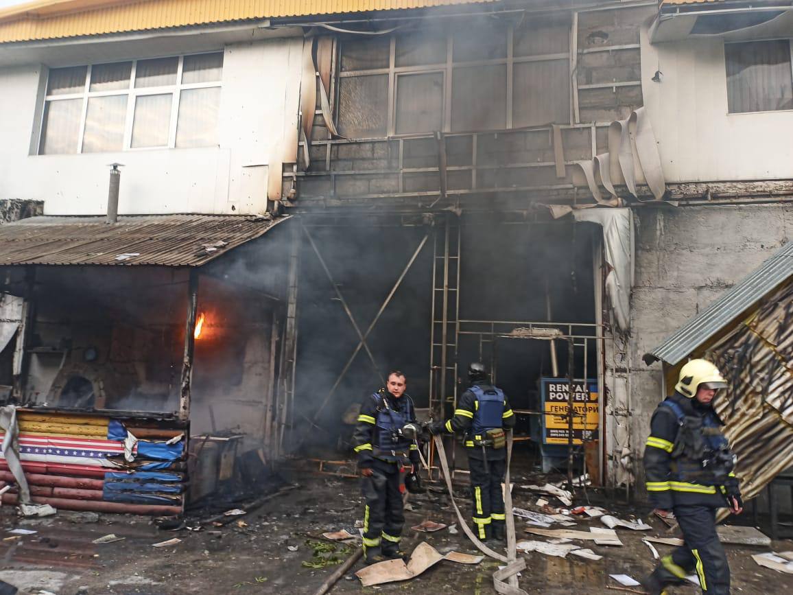 В результате обстрела произошло возгорание складского помещения на территории частного домовладения с расположенными на нем СТО и автомойкой, в Голосеевском районе города.