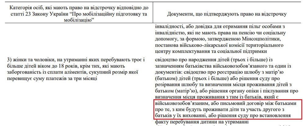 "Военнообязанный и отец троих несовершеннолетних детей признан годным к военной службе. Согласно мобилизационному закону, он автоматически должен получить отсрочку от мобилизации. Его дети рождены от двух женщин, с которыми мужчина разведен, пока не живет, но продолжает финансово содержать детей. Что выдумал ТЦК? Там дополнительно требуют договор между мужем и его бывшими супругами о том, что он участвует в содержании своих несовершеннолетних детей", – сообщил "Главкому" нардеп Игорь Фрис.