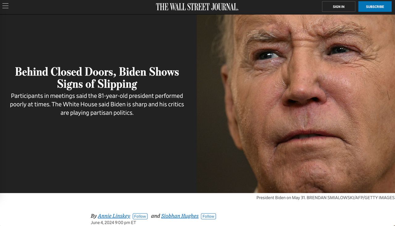 На встрече с лидерами Конгресса по поводу финансирования Украины в январе 2024-го президент говорил так тихо, что некоторые участники с трудом его слышали. Он смотрел на записи, чтобы делать очевидные выводы, делал длинные паузы и иногда закрывал глаза так надолго, что некоторые задавались вопросом, не заснул ли он.