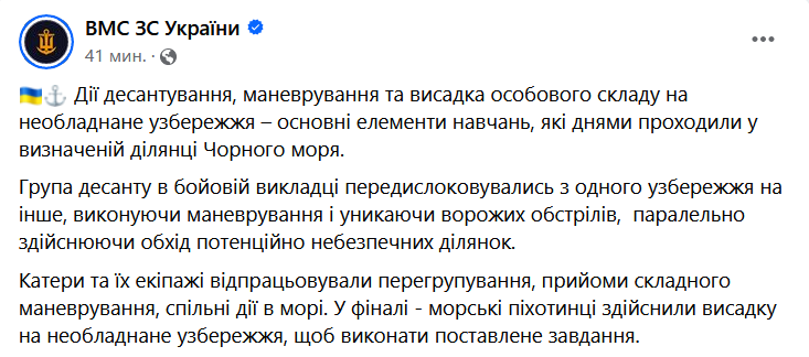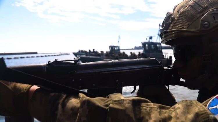 "Группа десанта в боевой выкладке передислоцировалась с одного побережья на другое, выполняя маневрирование и избегая вражеских обстрелов, параллельно совершая обход потенциально опасных участков", - пишут ВМС.