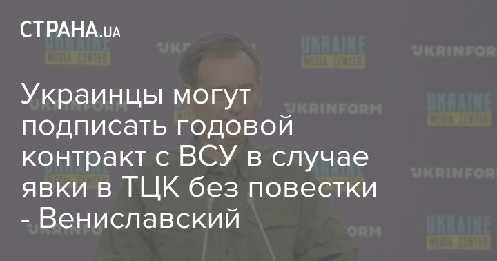 Украинцы могут подписать годовой контракт с ВСУ в случае явки в ТЦК без повестки - Вениславский