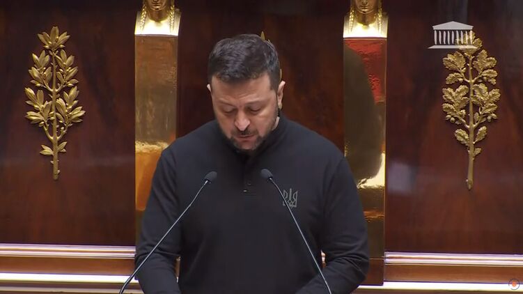 Президент Украины Владимир Зеленский выступил перед Национальным собранием Франции. Вступительную часть речи с благодарностями он произнес на французском языке.