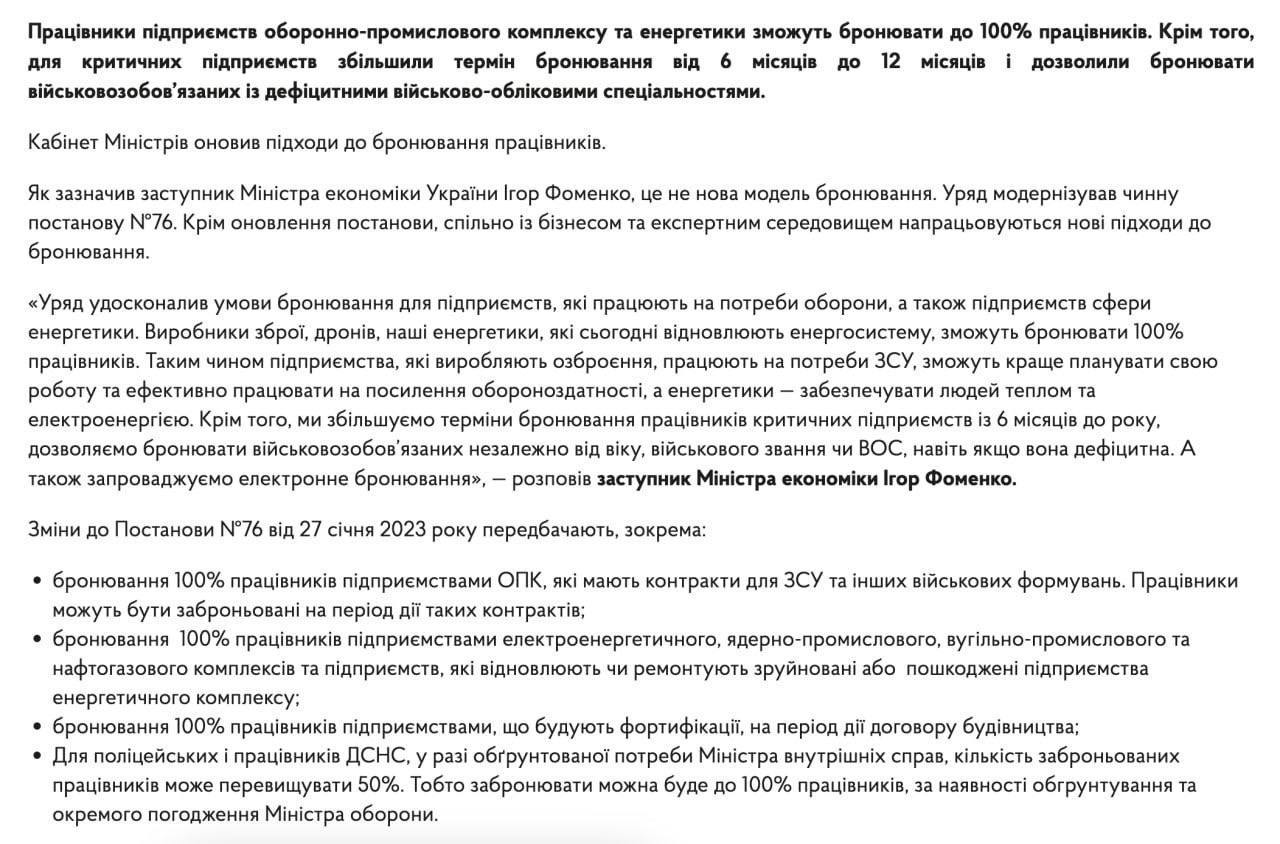 Также, согласно решению правительства, для критических предприятий увеличили сроки бронирования от 6 месяцев до 12 месяцев и разрешили бронировать военнообязанных с дефицитными военно-учетными специальностями.