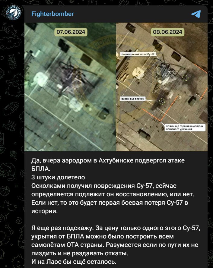 11:37 Российские авиационные паблики подтверждают удар по Су-57 в Ахтубинске Астраханской области.
