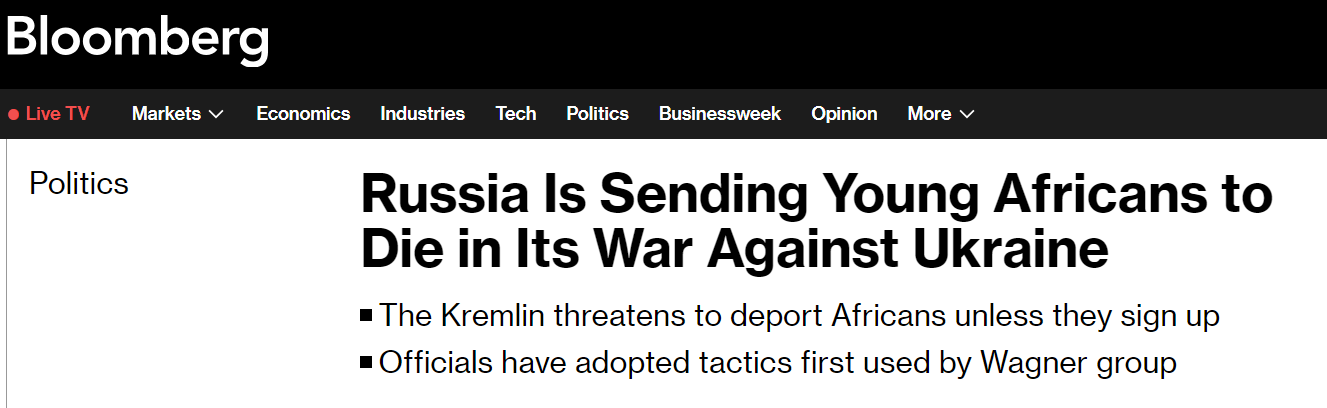 "Используя тактику, впервые использованную группой наемников Вагнера, российские чиновники все чаще угрожают не продлевать визы африканским студентам и молодым рабочим, если они не согласятся вступить в армию", - пишет издание.
