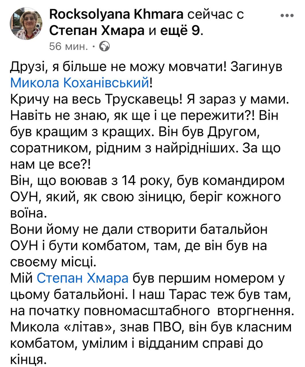 Известно, что Коханивский погиб возле Волчанска в окопе.
