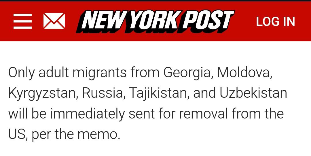 Соединенные Штаты будут без разбирательств депортировать мигрантов из шести стран бывшего СССР: Грузии, Молдовы, Киргизии, России, Таджикистана и Узбекистана. При попытке пересечения границы они "будут немедленно отправлены на выдворение из США".