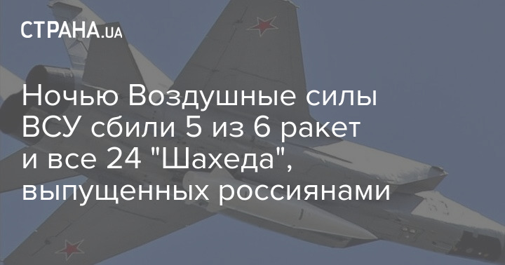 Ночью Воздушные силы ВСУ сбили 5 из 6 ракет и все 24 "Шахеда", выпущенных россиянами