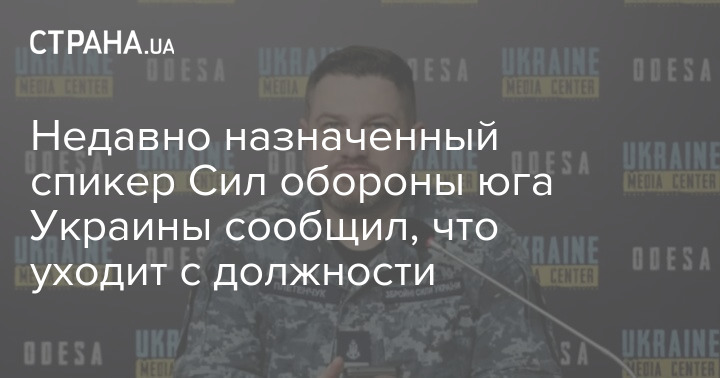 Недавно назначенный спикер Сил обороны юга Украины сообщил, что уходит с должности