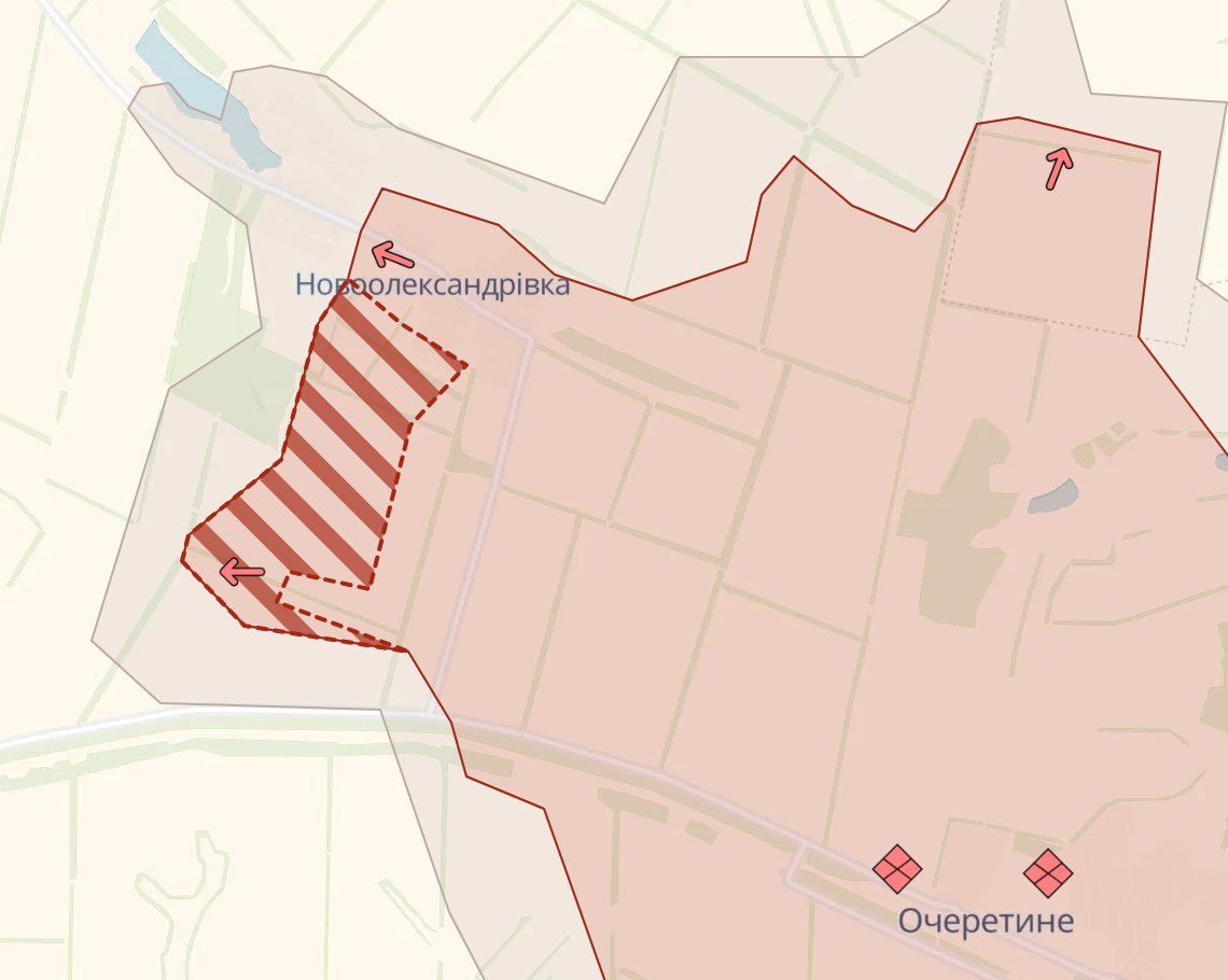 По данным Deep State, россияне продвинулись южнее Новоалександровки (к северо-западу от Очеретино, направление - трасса Покровск-Константиновка).