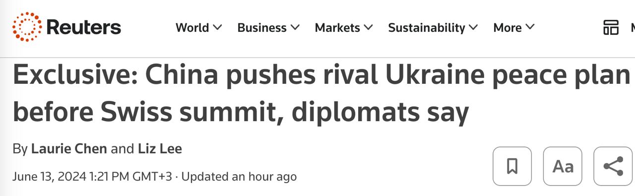 Пекин открыто не критиковал швейцарский саммит и напрямую не просил страны воздержаться от него, но говорил, что встреча "продлит войну".