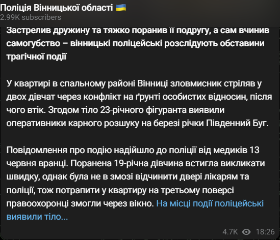 В Виннице военный убил двух девушек и застрелился. Фото: телеграм