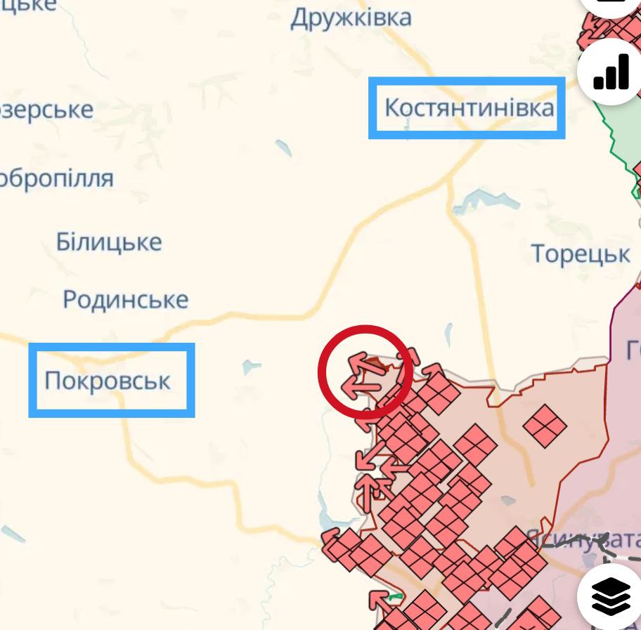 Таким образом продолжается движение противника к важной трассе Покровск - Константиновка.