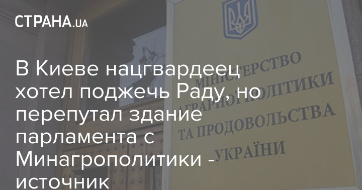 В Киеве нацгвардеец хотел поджечь Раду, но перепутал здание парламента с Минагрополитики - источник