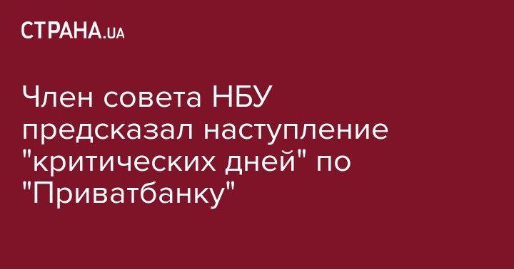 Член совета НБУ предсказал наступление "критических дней" по "Приватбанку"