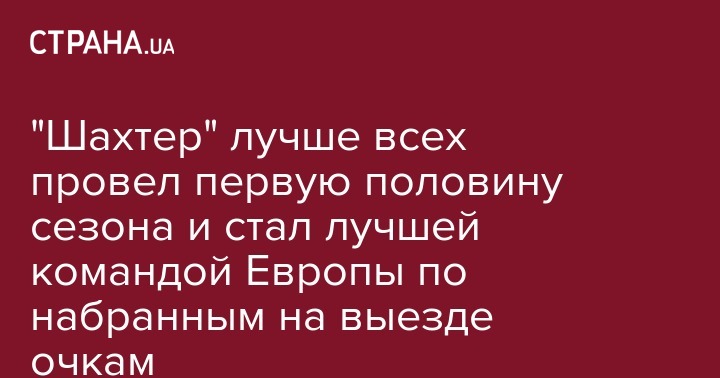 "Шахтер" лучше всех провел первую половину сезона и стал лучшей командой Европы по набранным на выезде очкам