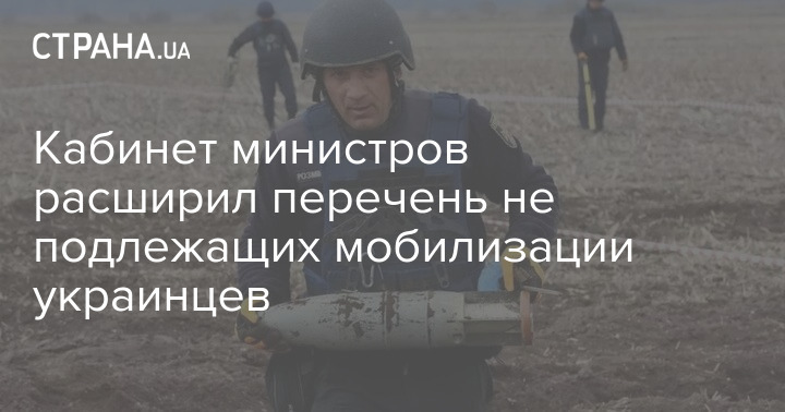 Кабинет министров Украины расширил перечень не подлежащих мобилизации: в него включили тех, кто занимается разминированием.