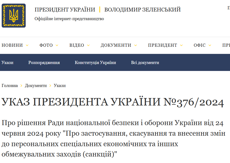 Соответствующий указ опубликован на сайте Офиса президента Украины.