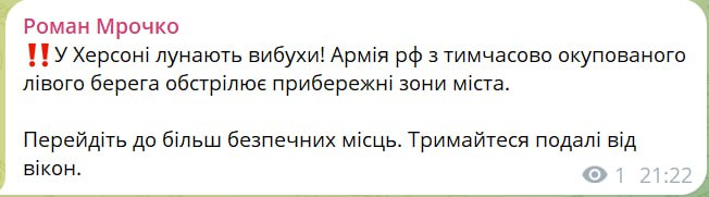 21.25 В Херсоне взрывы, сообщает глава ГВА Мрочко.