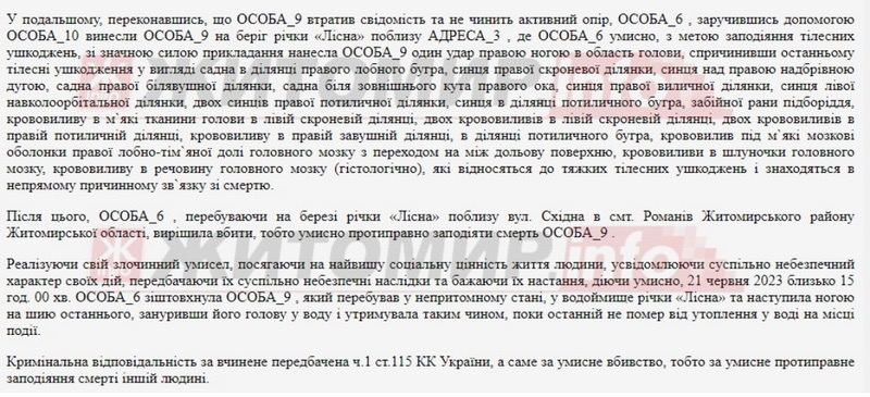 "Впоследствии из-за еды между ней и потерпевшим началась ссора, поскольку последний ругался и плевался в борщ, который она приготовила. На что она попросила больше так не поступать и ударила его рукой в ​​лицо несколько раз, около трех раз, от чего пострадавший упал на пол. Далее она нанесла ему еще удар ногой по голове и попросила помочь ей отнести пострадавшего к реке", - говорится в решении суда.